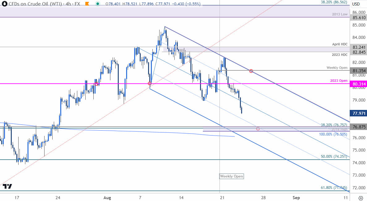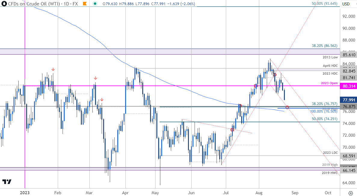 图表由技术策略师Michael Boutros绘制;TradingView上的WTI