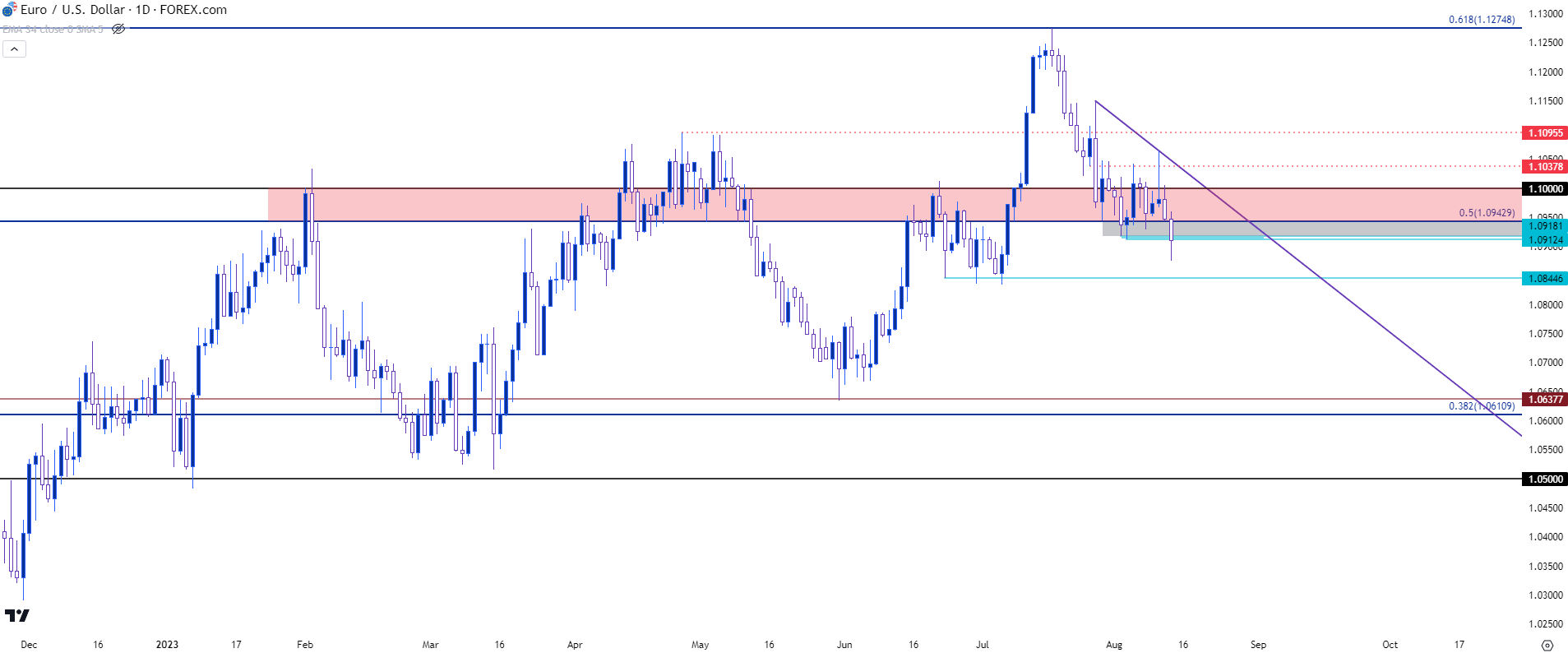图表由James Stanley绘制,Tradingview上的欧元/美元