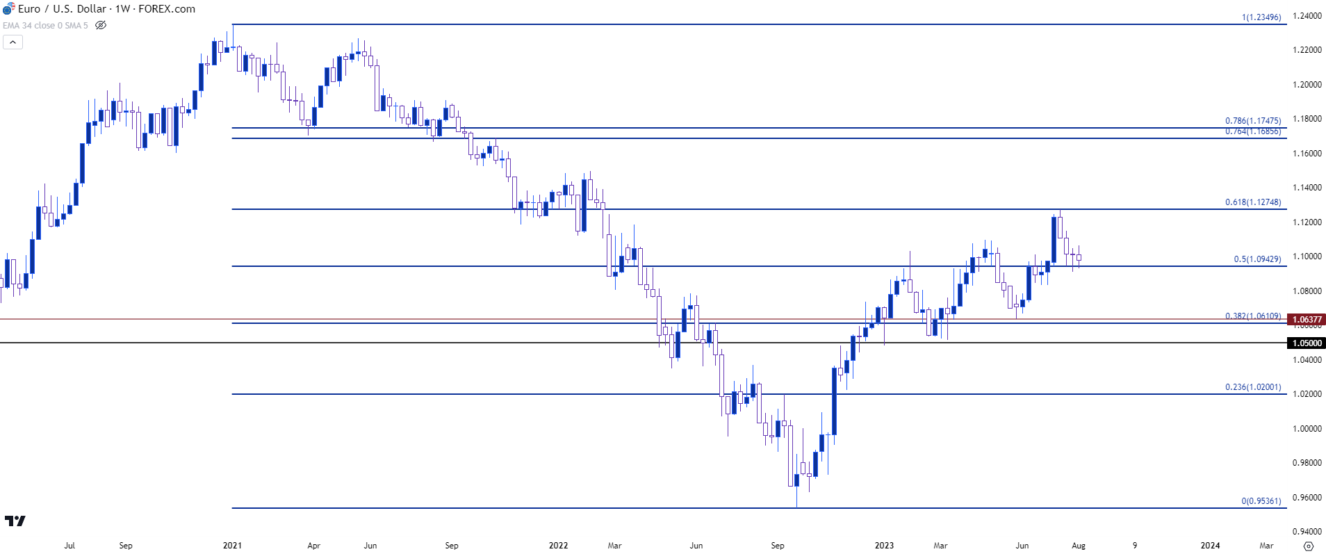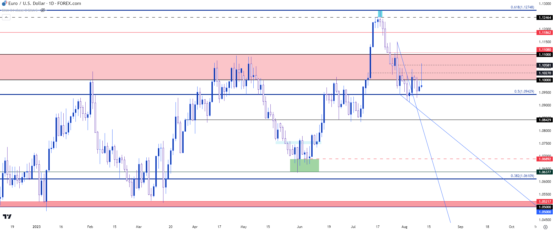 图表由James Stanley绘制,Tradingview上的欧元/美元