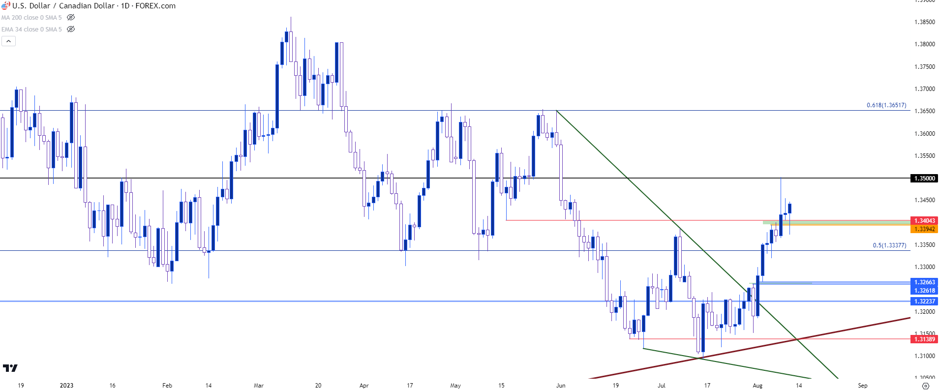 图表由James Stanley绘制,Tradingview上的美元/加元