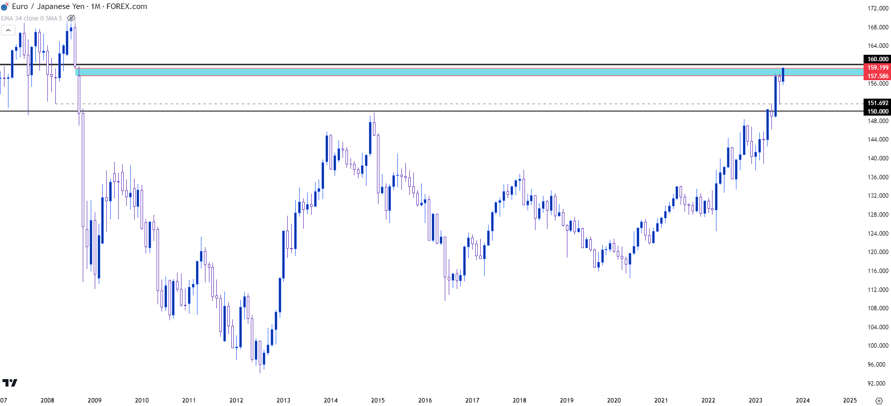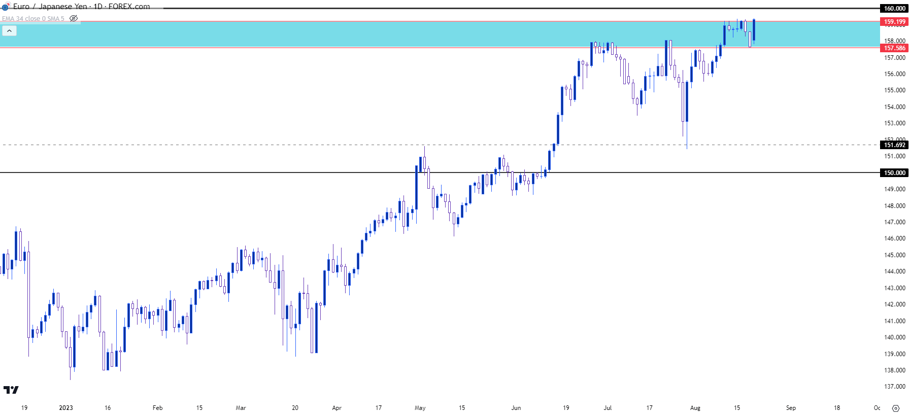 图表由James Stanley绘制,Tradingview上欧元/日元