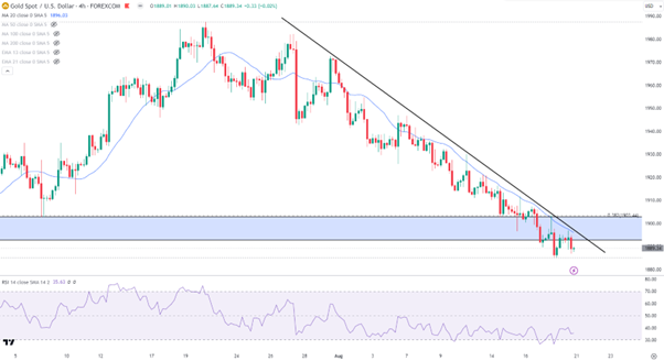 黄金阶段性触底了吗?或许还需要耐心等待明确的反转信号的出现,但不可否认美元指数越来越接近超买区域,这是黄金多头的希望。金价反弹方向上关注1900/03区域的阻力,即20MA和趋势线的重叠区域,但高利率始终是黄金的隐患。