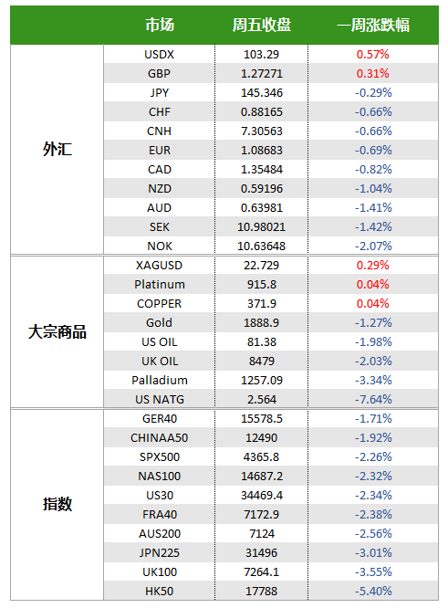 美/日连续两周高位回调收于145.38,日本的通胀压力再次给日元多头带来希望。欧元、加元、澳元、纽元等节节败退,连续五周下跌。澳洲联储会议声明暗示加息周期可能就此结束。